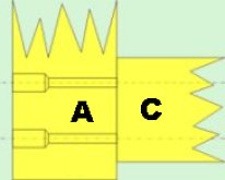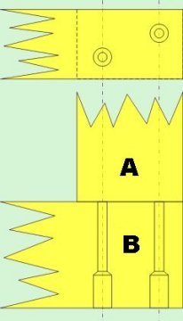 - Bohrungen und Senkungen setzen um die beiden (A) mit (C) zu