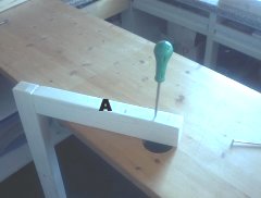 - den anderen Schenkel (A) in gleicher Weise mit (B) befestigen,